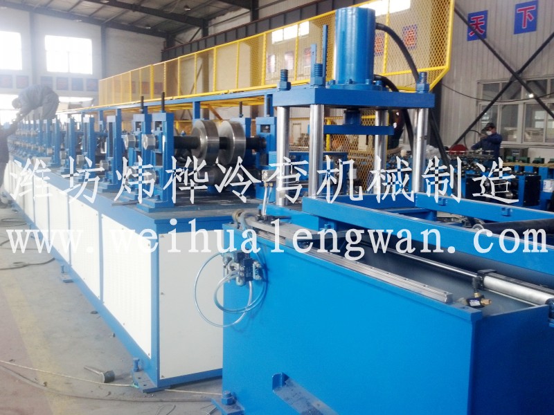 設備主要由放料機、整平送料系統、沖孔、送料、成型主機、切斷機、收料臺、電器控制柜等部件組成。