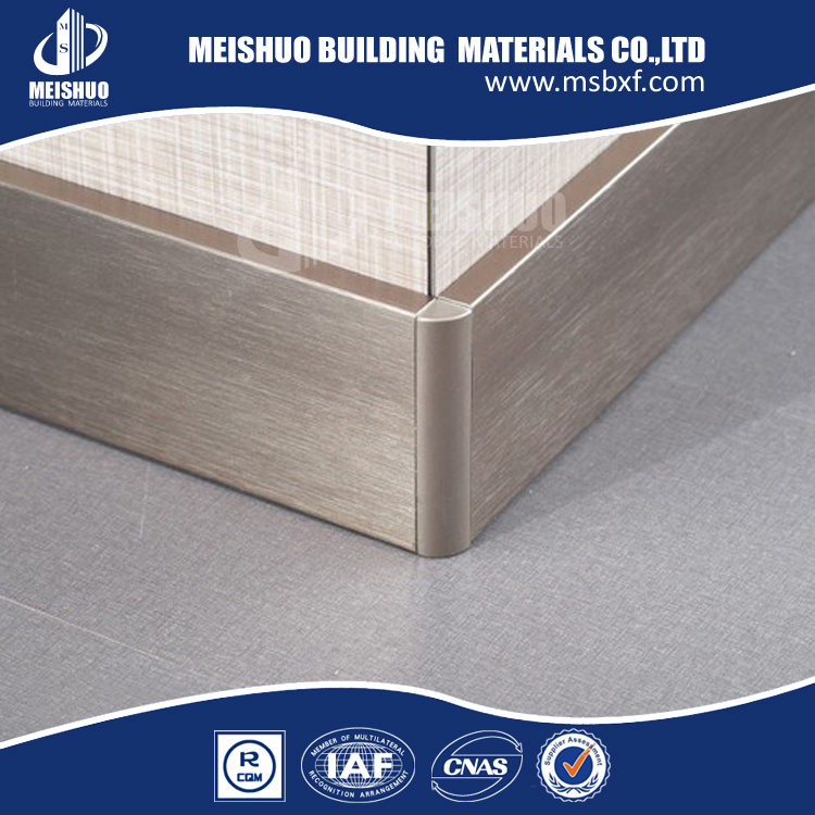踢腳線是裝修必須用到的材料之一,常見(jiàn)的材質(zhì)有木制、白鋼、天然石材、PVC等。其中,木制踢腳線容易返潮、發(fā)霉,施工也較為復(fù)雜,且板材及膠水中含有甲醛等有害物質(zhì),不夠環(huán)保;白鋼踢腳線款式較為單一,時(shí)間長(zhǎng)了易開(kāi)膠脫落;PV C踢腳線在接縫、轉(zhuǎn)角處不太好處理,且容易斷裂、變形,板材中含有害物質(zhì);大理石踢腳線雖然裝飾效果好,但若粘接不好容易脫落,且施工周期長(zhǎng),造價(jià)較高。新款的鋁合金踢腳線較好地回避了上述材質(zhì)的弊端,性價(jià)比較高,集所有材質(zhì)踢腳線優(yōu)點(diǎn)于一身。外觀簡(jiǎn)潔、時(shí)尚、大方。因?yàn)椴牧系沫h(huán)保及可回收利用被建設(shè)部推廣使用,本產(chǎn)品表面處理及規(guī)格多樣。適用于各種地面材質(zhì)及裝修風(fēng)格,是現(xiàn)代高檔裝飾理想選材。創(chuàng)造具有時(shí)尚品質(zhì)的墻角文化是我司一貫追求的目標(biāo)。