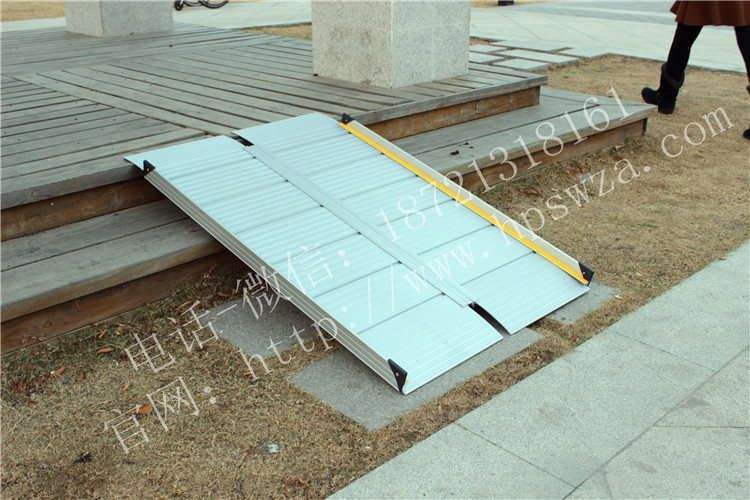 殘疾人便捷式移動輪椅坡道又稱之為樓梯斜式坡道板,樓梯坡道輪椅斜式坡道板,無障礙坡道板等等。