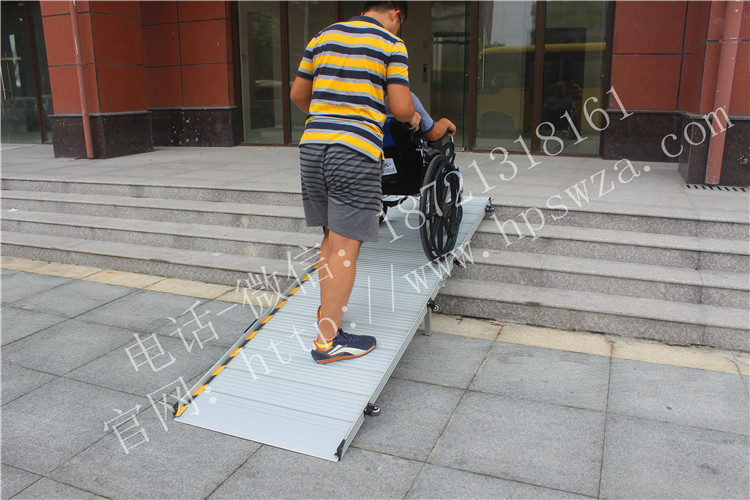 殘疾人便捷式移動輪椅坡道又稱之為樓梯斜式坡道板,樓梯坡道輪椅斜式坡道板,無障礙坡道板等等。