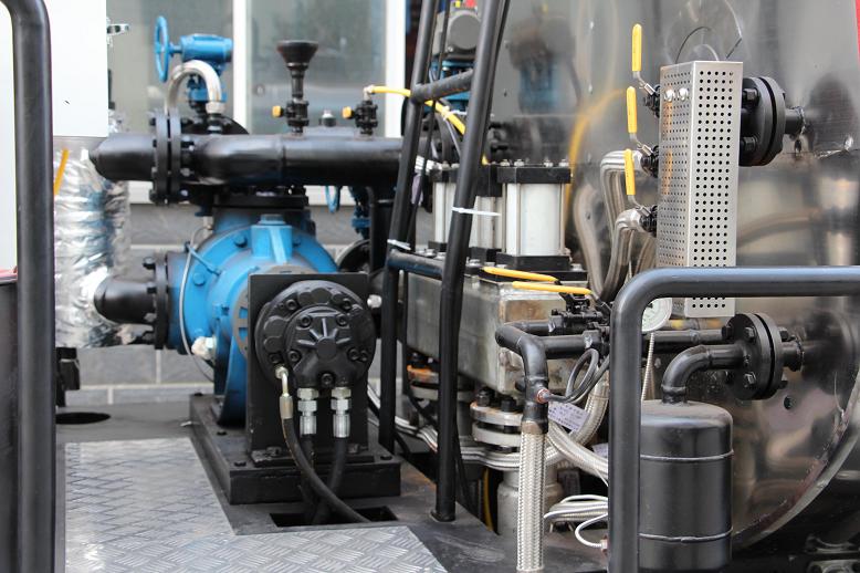 3、抽油功能:將瀝青從瀝青池、加溫罐或其他瀝青儲(chǔ)存罐中直接抽到灑布車(chē)中。