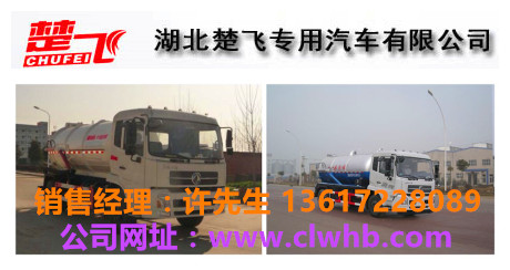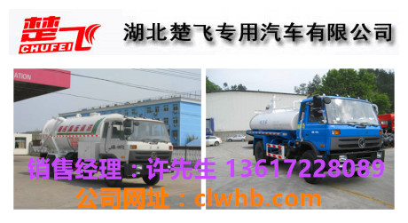 湖北成龍威楚飛專(zhuān)用汽車(chē)有限公司是一家專(zhuān)業(yè)從事吸污車(chē)生產(chǎn)、銷(xiāo)售的專(zhuān)用汽車(chē)廠家。我公司吸污車(chē)品牌多,種類(lèi)全。我公司堅(jiān)持:以人為本,以信立企,技術(shù)革新,緊抓產(chǎn)品質(zhì)量,以此為信條產(chǎn)足于中國(guó)專(zhuān)用汽車(chē)之都——湖北隨州。我們鄭重承諾給您:最優(yōu)惠的價(jià)格,最好的質(zhì)量,最完善的售后服務(wù)。銷(xiāo)售經(jīng)理:許先生 電話:13617228089 公司電話:0722-3309550 公司網(wǎng)址:www.clwhb.com
