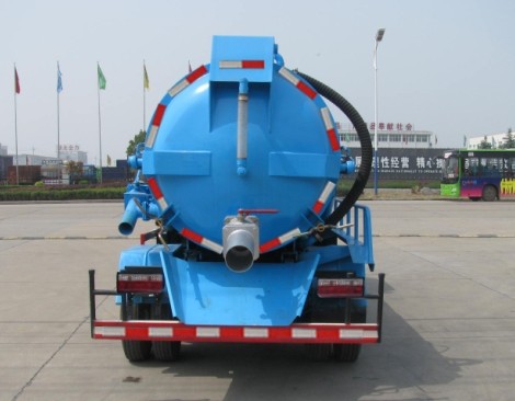★ 吸污車基本配置: 專用部分由真空吸污泵、取力器、傳動軸、水氣分離器、油氣分離器、多路換向閥、罐體、放污閥、視污窗、真空壓力表、管網系統、液壓系統等組成。我公司生產的吸污車安裝進口防溢流裝置,防止糞便、污水因吸滿倒灌至真空泵系統。
