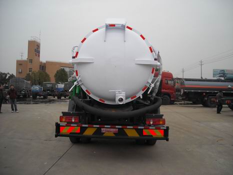 ★ 吸污車基本配置: 專用部分由真空吸污泵、取力器、傳動軸、水氣分離器、油氣分離器、多路換向閥、罐體、放污閥、視污窗、真空壓力表、管網系統、液壓系統等組成。我公司生產的吸污車安裝進口防溢流裝置,防止糞便、污水因吸滿倒灌至真空泵系統。