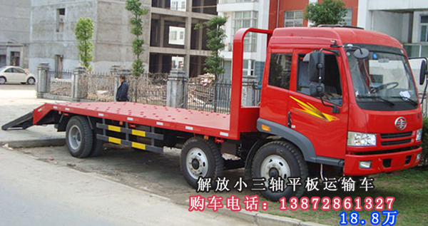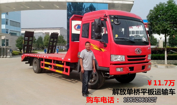24小時購車熱線:187-7135-2867 商務QQ:28268371444解放單橋平板運輸車(8噸-12噸挖機拖板車)