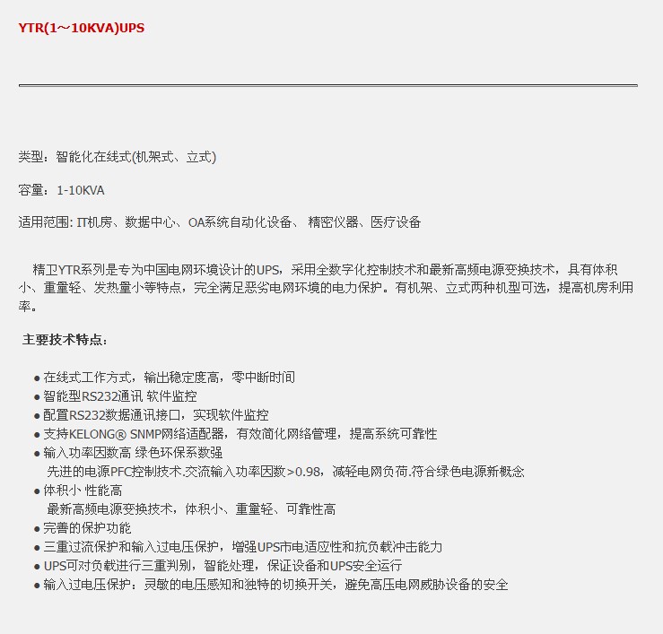 當前位置: 首頁 » 供應產品 » 電工電氣 » 電源 »科華ups電源YTR1110S高頻10kva18410402529