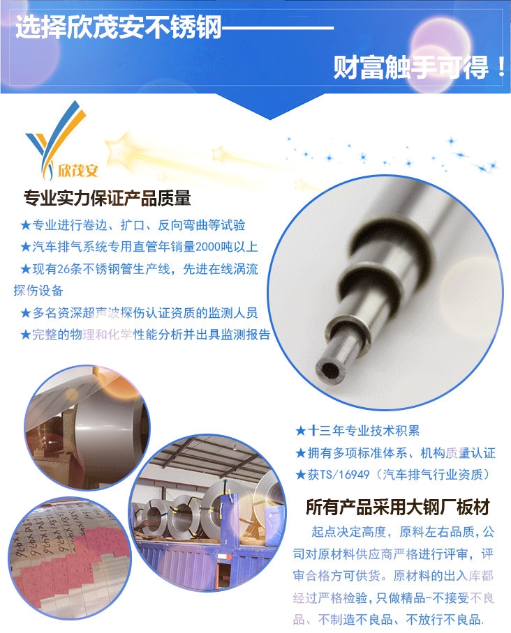 欣茂安免費酸洗丨拋光。酸洗工藝的冶金功能是有效去除氧化層與貧鉻層,實現《國標》414不銹鋼板現貨尺寸表面鈍化,同時改善《國標》416Se不銹鋼管多少錢一公斤表面質量。如酸洗后的不銹鋼表面仍殘留有富硅相的氧化層及貧鉻層,我們通過終酸洗工藝去除。 “技術工人是企業的寶貴財富,公司大力倡導職工創新,努力提升職工技能,讓一人之技變為眾人之長,將對企業的發展和職工的成長與生產起著重要的推動作用—————欣茂安不銹鋼&品質無雙!《國標》S32550不銹鋼管對應牌號今日行情》》》在線報價189-6185-2831