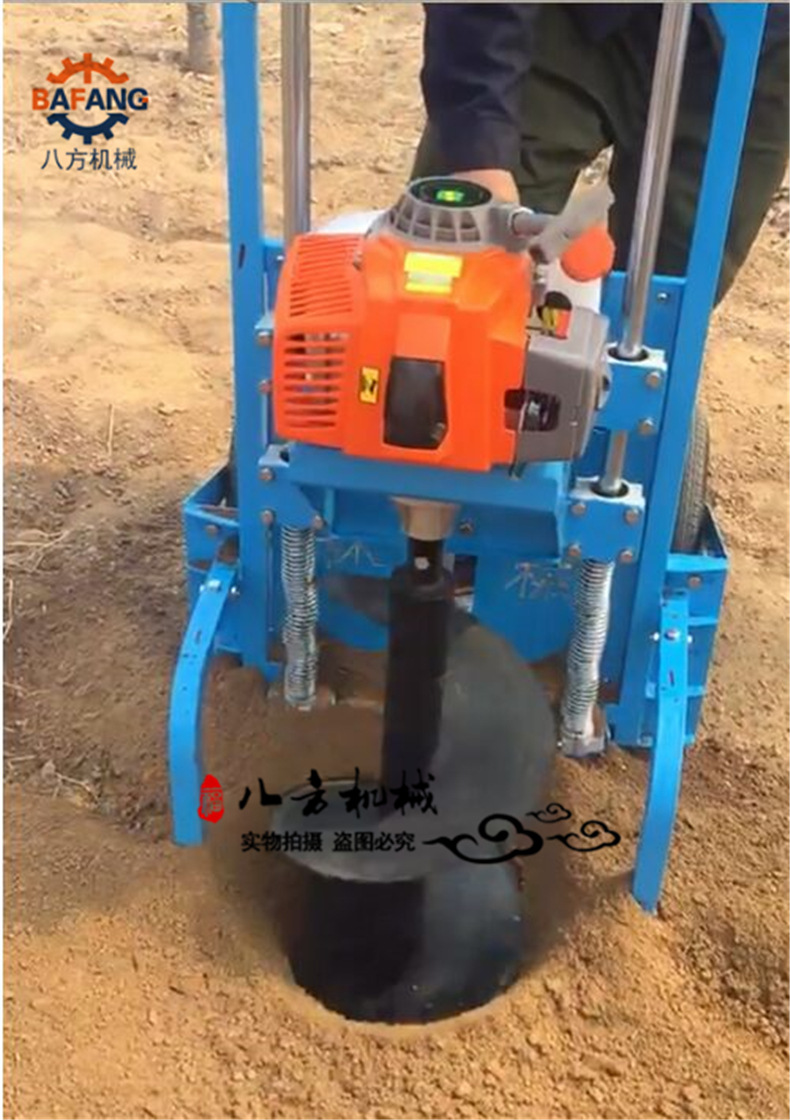 52cc汽油機: 風冷單缸二沖程,發動機排量:52 CC, 啟動方式:手拉反沖起動,燃油比:汽油與二沖程機油25:1,凈重:13kg,適于挖250mm以內的坑