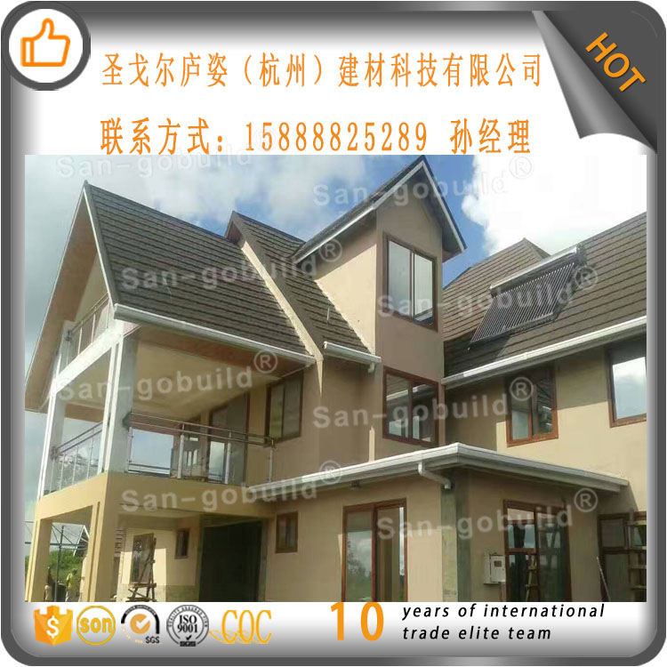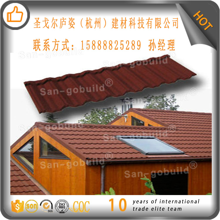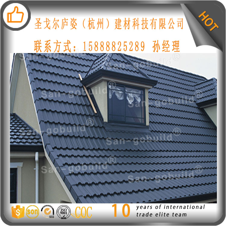 圣戈爾廬姿(杭州)建材科技有限公司—圣戈邦彩石金屬瓦,彩石金屬瓦美觀高雅,堅固耐用,綠色環(huán)保,是當(dāng)代各式屋面材料的理想產(chǎn)品,彩石金屬瓦適用于各種款式和結(jié)構(gòu)的斜坡屋頂項目,也適用于原有建筑的平改坡、舊屋面和建筑裝飾。彩石金屬瓦使用環(huán)保材料,對人體和環(huán)境不造成任何傷害。