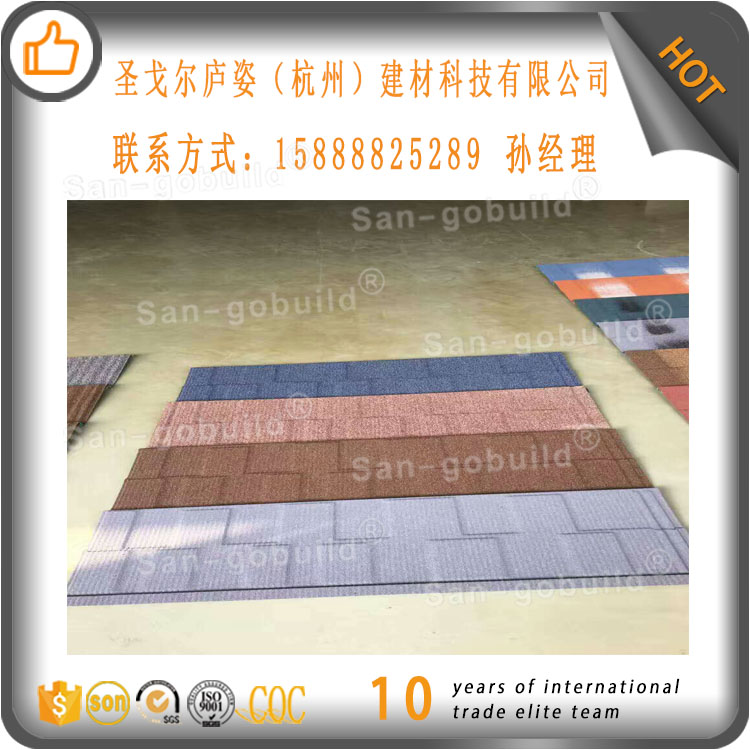 圣戈邦彩石金屬瓦因為瓦片的厚度問題,所以彩石金屬瓦的重量不同,我們瓦片有0.4、0.45、0.5厚度的瓦片嗎。0.4的一般2.6公斤,以此類推厚度越厚重量就越重,一般長江以南秦嶺分界線為準,南方用0.4厚度的剛剛好,北方因其暴雪天氣,建議買0.45的,本廠是以鍍鋁鋅鋼板為基材,厚度指的是鍍鋁鋅鋼板。