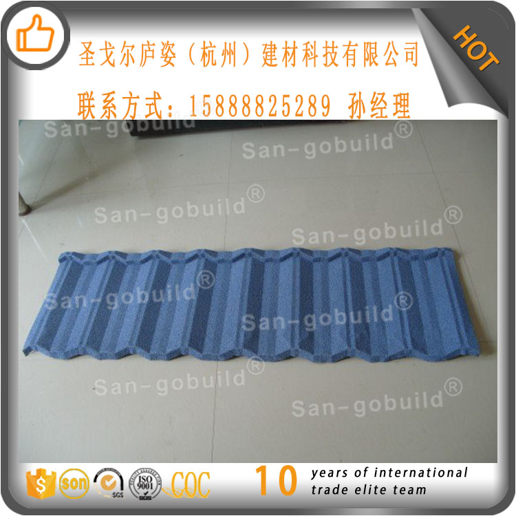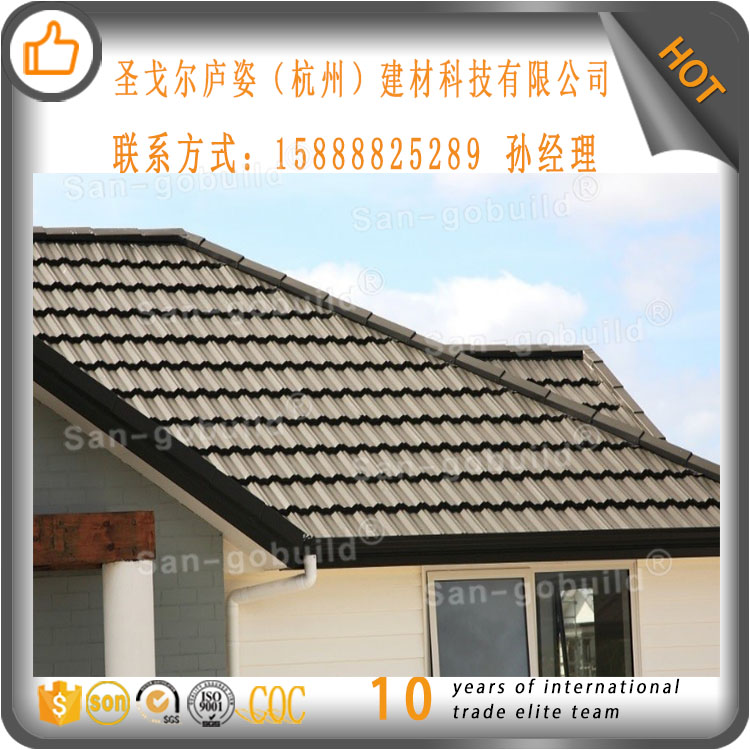 在總結國外同類產品經驗的基礎上進行了創新,彩石金屬瓦最突出的特點是色彩豐富并經久不褪,造型美觀立體感強且符合中國建筑文化特色。同時它還具有質輕、防水、堅韌、保溫隔熱、隔音、抗腐蝕、抗風防震、抗冰雹、抗污、綠色環保、防火、絕緣、安裝簡便等優點,是各類永久建筑屋面裝飾和防水的理想材料,尤其適用于我國目前大力推廣的“平改坡”工程。