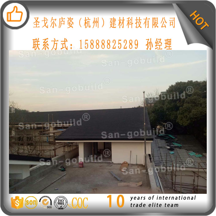 彩石金屬瓦是采用高新技術生產的,以防腐性能優異的鍍鋁鋅鋼板為基板,以耐候性極強的丙烯酸樹脂為黏合劑,以彩色天然砂礫為面層的新型高級屋面材料。因其美觀、輕巧、耐用、環保,近年來已近成為國際屋面材料的主流產品,國內一些高檔建筑也已開始使用,作為國內專業彩石金屬瓦生產廠家,我們秉著誠信至上、服務第一的理念,生產高品質、高標準的金屬瓦產品。