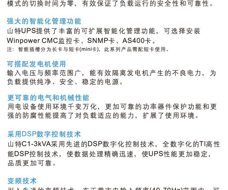 深圳山特 在線式 UPS不間斷電源C1KS800w外置電池商品參數: