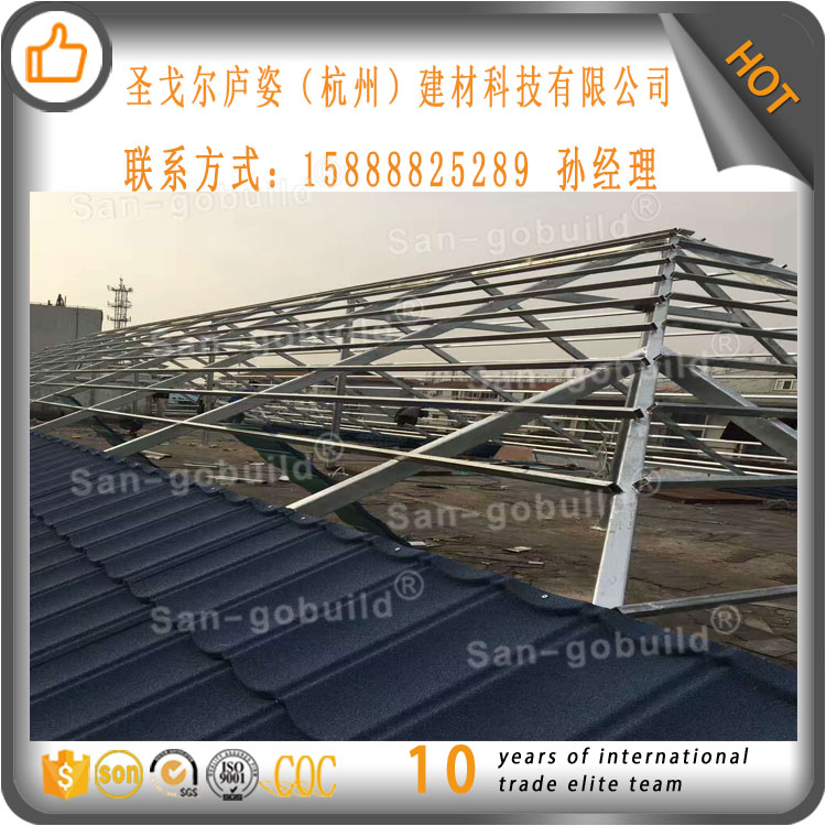 在總結(jié)國(guó)外同類產(chǎn)品經(jīng)驗(yàn)的基礎(chǔ)上進(jìn)行了創(chuàng)新,彩石金屬瓦最突出的特點(diǎn)是色彩豐富并經(jīng)久不褪,造型美觀立體感強(qiáng)且符合中國(guó)建筑文化特色。同時(shí)它還具有質(zhì)輕、防水、堅(jiān)韌、保溫隔熱、隔音、抗腐蝕、抗風(fēng)防震、抗冰雹、抗污、綠色環(huán)保、防火、絕緣、安裝簡(jiǎn)便等優(yōu)點(diǎn),是各類永久建筑屋面裝飾和防水的理想材料,尤其適用于我國(guó)目前大力推廣的“平改坡”工程。