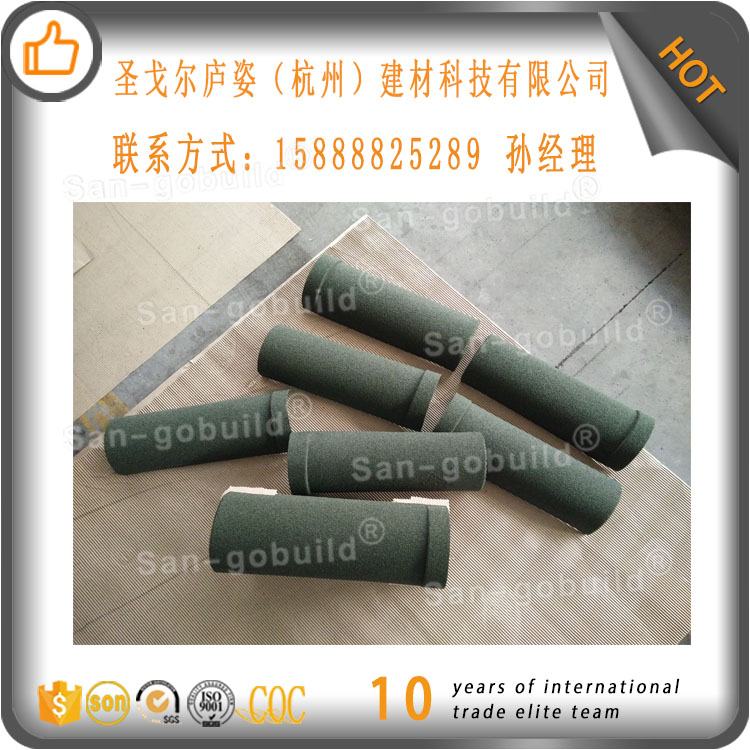 3)彩色砂粒是金屬瓦的裝飾層及基層保護層,它是由一定粒徑的玄武巖顆粒經高科技著色工藝和高溫燒結而成的。具有十多種顏色,可耐紫外線照射,能降低雨水給金屬瓦造成的噪音。