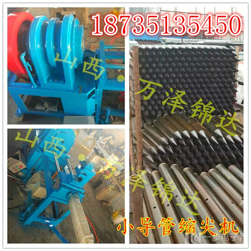 江西小導管縮尖機生產線引進國外先進技尸采用4片打擊模對工件打擊成形,結構新穎、性能穩定、更換不同模具可完成錐縮、壓花等生產要求。該機可采用自動進出料,大大提高了生產效率,減少勞動強度。