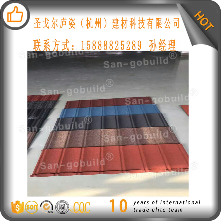 3、在鍍鋁的彩石的板合鋼的材料混合而成,具有防止漏水和防止色彩掉色的現象. 彩石金屬瓦,裝飾現代風格的時尚感,體現了時尚建筑的效果美和建筑風格的獨特性化,從而提高了建筑風格的現代簡單美,使用于各類房頂建筑的裝飾,房屋與主人的雙色效果,用于長期在室外暴露的耐久性的材料,能長期承受紫外線照射的使用性能。