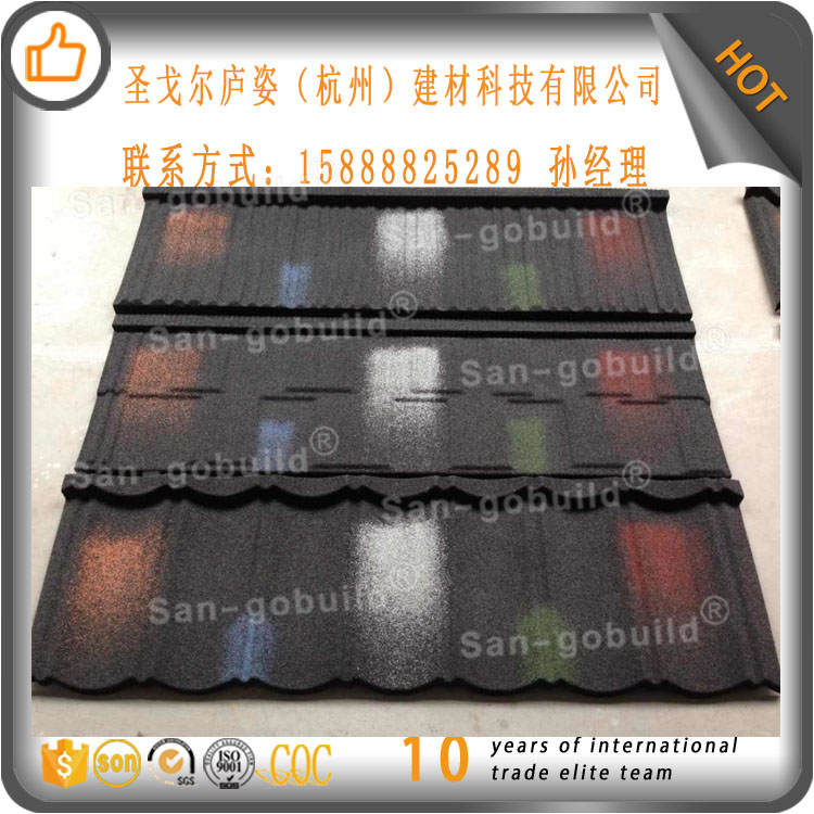 彩石金屬瓦色彩鮮艷,是現今最流行的屋面瓦,平鋪在房屋上,鱗次櫛比、錯落有序,典型的歐洲風格,買屋面瓦不僅質量好,還要選自己喜歡的,俗話說千金難買心頭好,圣戈邦彩石金屬瓦既可以滿足您質量的要求還符合您想要的品味。