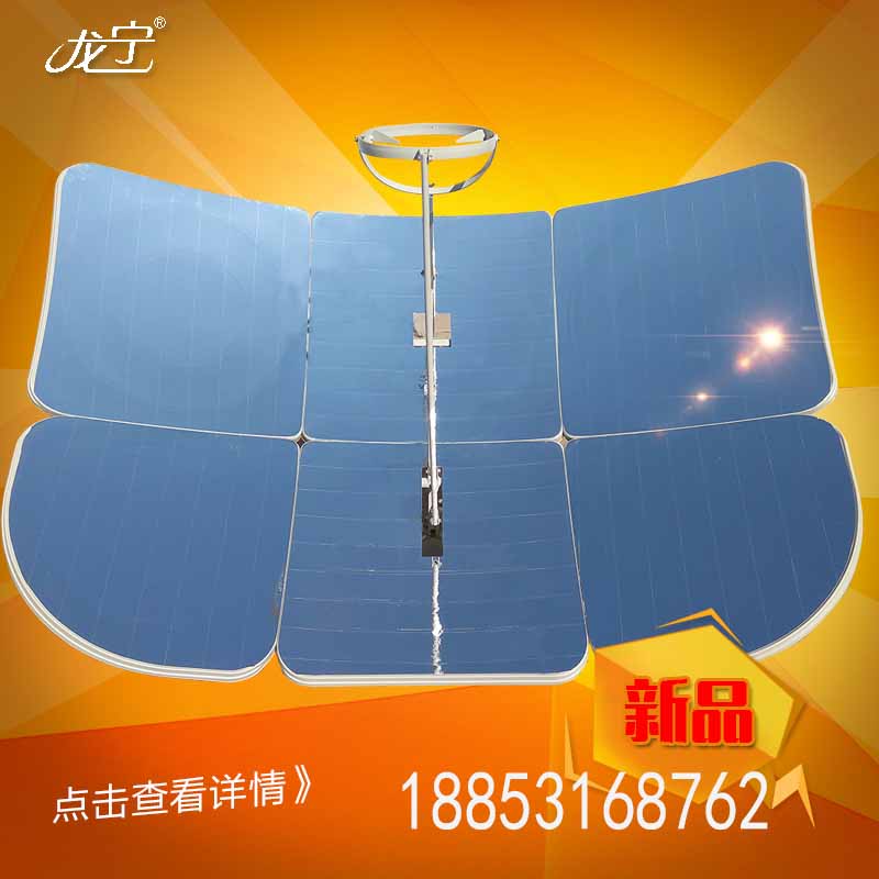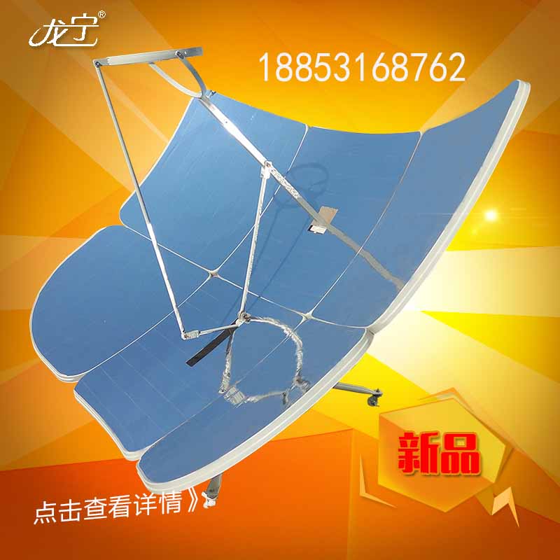 作為太陽能灶多功能新款太陽能灶家家都需要,不用煤、柴、電,不用液化氣,不用花一分錢,利用太陽光,就可以燒開水,做飯,炒菜用的新型多功能太陽灶,將為您的生活帶來方便和財富。該太陽灶使用方便,先進的偏軸多極化光學設計,可上、下、左、右、前、后任意角度調節。能將太陽光的全部能量轉化成熱能進行炊事和燒水。一個家庭一年大約可節省60%的液化氣、煤或柴。不但節省了大量的燃料,節省了開支,而且保護了生態環境,利國利民,造福子孫后代。因此,太陽灶歷來是國家大力倡導扶持的綠色環保免稅項目。該太陽灶只需一次投資,就可長期受益。山東龍寧太陽能灶廠研制的這種太陽灶,直接利用太陽光就可以燒水、做飯、炒菜等。溫度高達1200度。可滿足蒸、燉、燜、煮、煎、炒、炸等各種炊事活動。綠色環保無污染,是國家大力倡導的環保免稅項目。該產品使用的是先進的發光材料,使用壽命長達10年以上。只要有陽光,一年四季都可使用,使用功率相當于1000瓦的電爐。該產品拆卸,推拉自如,安裝方便,角度任意可調,安裝好后占地面積2.3平方米。