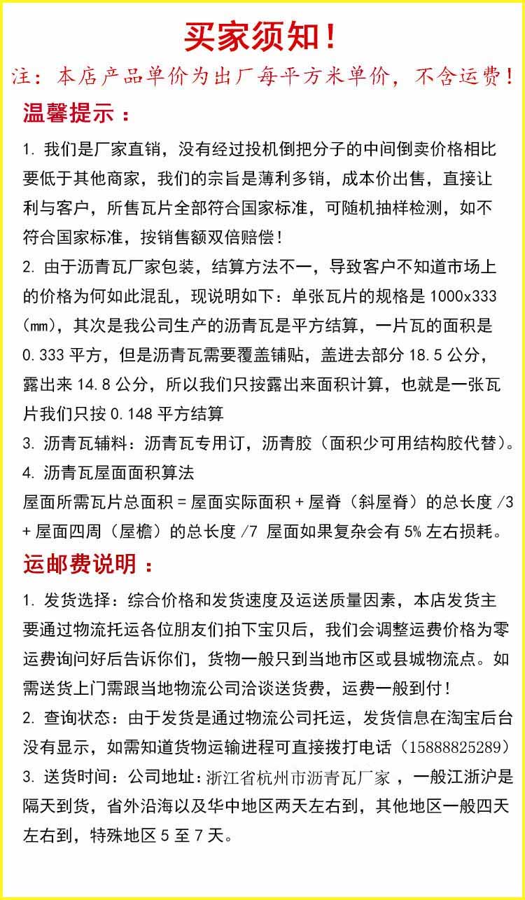 價格:玻纖胎與聚酯胎、復合胎在原材料上玻纖胎最貴,生產出來的彩色瀝青瓦在市場售價相等;、怎樣識別玻纖胎與聚酯胎、復合胎所生產的瀝青瓦:(1)、從厚度可以區分,玻纖胎制造的瀝青瓦其厚度均控制在國家標準2.6mm-2.7mm之間,聚酯胎、復合胎制造的瀝青瓦厚度基本超過國家標準范圍均在3.0mm及以上;(2)、從重量可以分辨,玻纖胎基瀝青瓦其每片重量大約在0.5公斤左右,聚酯胎基瀝青瓦每片重量大約在0.7公斤左右,復合胎基瀝青瓦的重量大約在0.8公斤甚至更重。