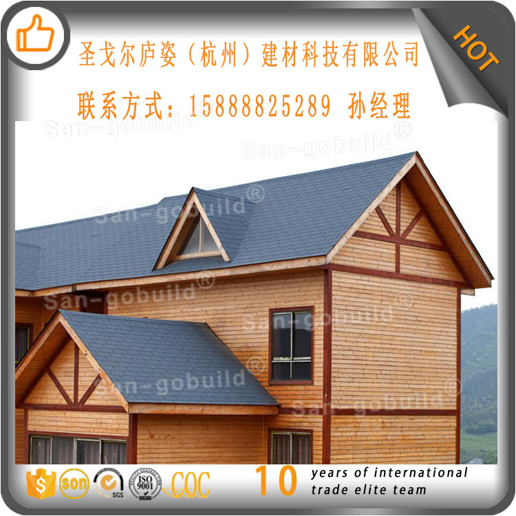 玻纖瓦,全名玻纖胎瀝青瓦。采用玻纖胎為基料,附著改性瀝青和雙層彩砂,加以提煉制作而成,目前廣泛應用于各類型的木屋別墅項目,更是各類度假村建筑屋面的首先瓦料。玻纖瓦在民間不同地域有著各不相同的名稱,有的地方叫它瀝青瓦,有的則稱之為油氈瓦,也有被叫做橡膠瓦甚至草皮瓦的,或者直接稱為別墅瓦