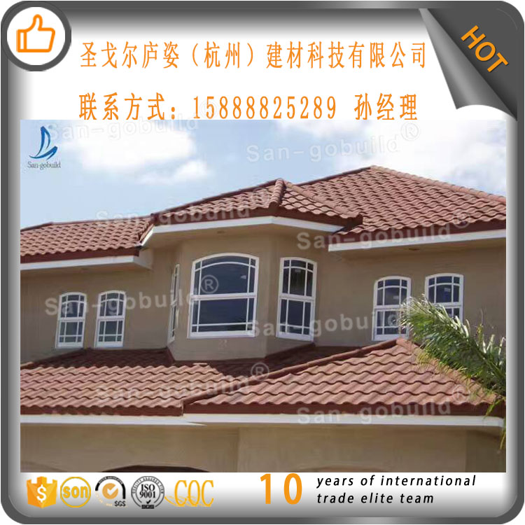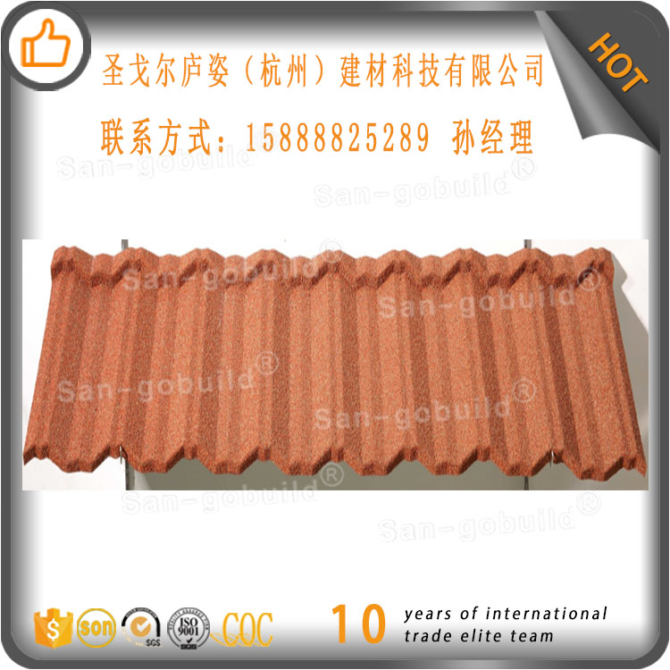 杭州圣戈邦是一家集產品科研、開發、生產、銷售為一體的綜合性企業,主要生產加工銷售屋面彩石金屬瓦等。公司已通過ISO9001:2008質量體系認證、注冊商標品牌等證書,產品質量已通過檢驗,并獲得檢驗報告。在國內擁有現代化生產基地和眾多穩定的國內外合作伙伴,公司的產品以其卓越的性能和高雅的品味為廣大客戶所親睞,產品暢銷國內外。我們將會給您提供優良的質量、合理的價格、完善的服務,讓您能夠買到質量好價格優的金屬瓦!