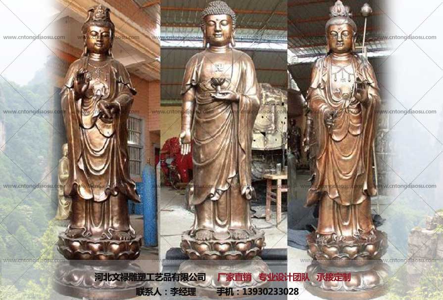 尊佛像轉化成銅雕佛像。西方三圣雕塑也是由此而來的西方三圣顧名思義就是三位佛像組成的這三位佛像分別是阿彌陀佛、觀世音菩薩和大勢至菩薩他們合稱西方三圣。阿彌陀佛是表無量光