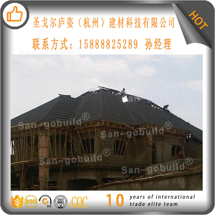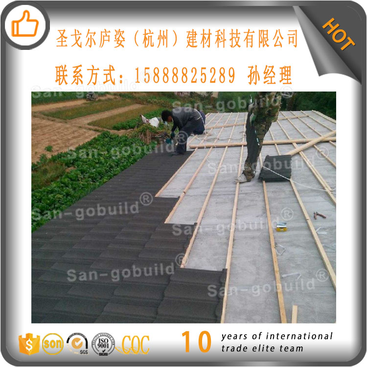 Roman type color metal tile stone by high technology production, the introduction of advanced production line, with excellent anticorrosion property of galvanized steel substrate, with strong weathering of acrylic resin as binder, ceramic sintering sand for surface layer of new senior roofing material. With its beautiful, lightweight, durable, environmental protection, in recent years has become the mainstream of international roofing materials products, some of the domestic high-end construction industry began to use.