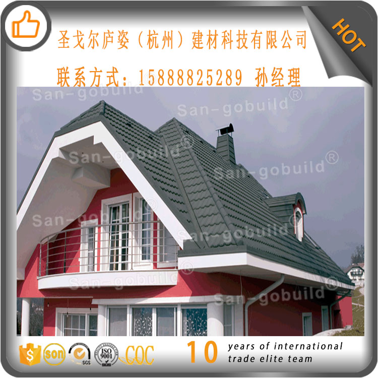 彩石金屬瓦因其選用材料不同,因此在價位上有貴也有便宜,比如說鍍鋁鋅鋼板,它的含鋅量決定它的重量和價格,圣戈邦彩石金屬瓦選用高品質(zhì)的鍍鋁鋅鋼板,我門有不同厚度鋼板,我們最輕的是0.4mm的,若想要更厚的我們有0.45mm、0.5mm厚的,一般來說若沒有北方那種高寒天氣,0.4mm厚度的即可,厚度不同價位亦不同。