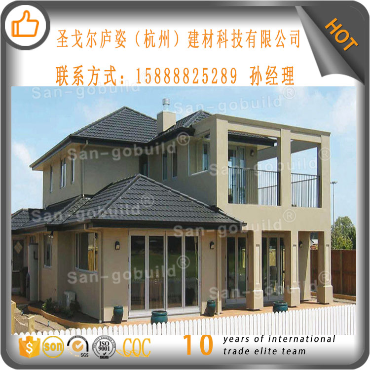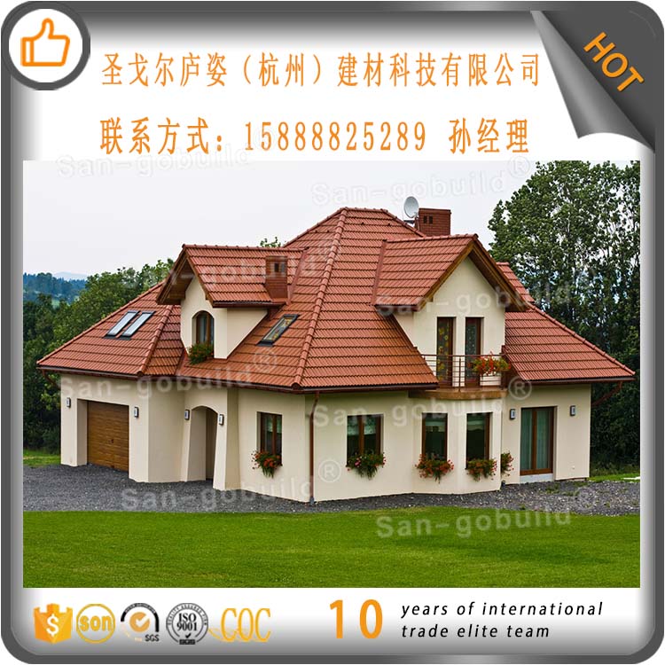 彩石金屬瓦高檔屋面展示我國屋面材料一般采用予制構件、鋼筋混凝土、金屬瓦、粘土瓦、彩色水泥瓦、水泥金屬瓦等。鋼筋混凝土由于成本高,一般作為高檔工業廠房。住宅樓和民用悠久性房屋屋面材料;粘土瓦作為傳統屋面材料,由于強度低、壽命短、吸水率高、生產時大量占用耕地、污染環境、浪費能源。國家已明令禁止生產使用。