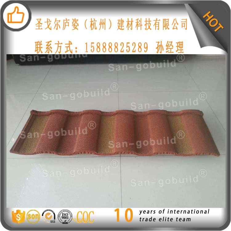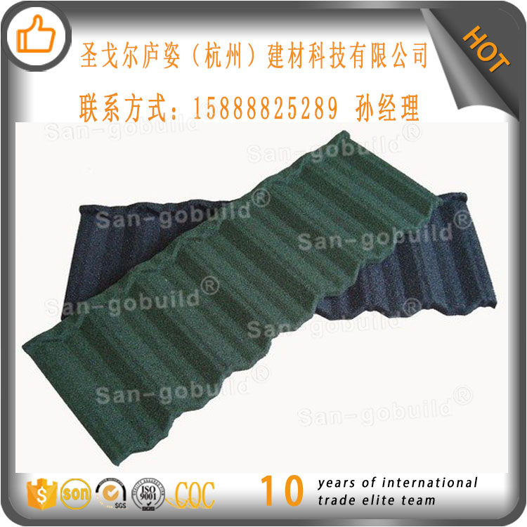 Flat out stones on the French complex metal, not only highlights the roof stereo feeling, and make the building more elegant atmosphere, so choose colored stone tile, metal is a symbol of status and elegant noble temperament, at the same time the types of tiles is very much also, there are 19 edition, the modern version of the classical version of, according to the personal love, choose a different size, color also has a lot of kinds, can also do camouflage is two kinds of sand on the same tiles, customers also can match colors, making the belongs to own roof tile.
