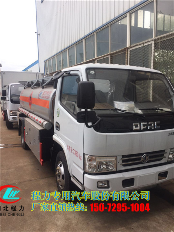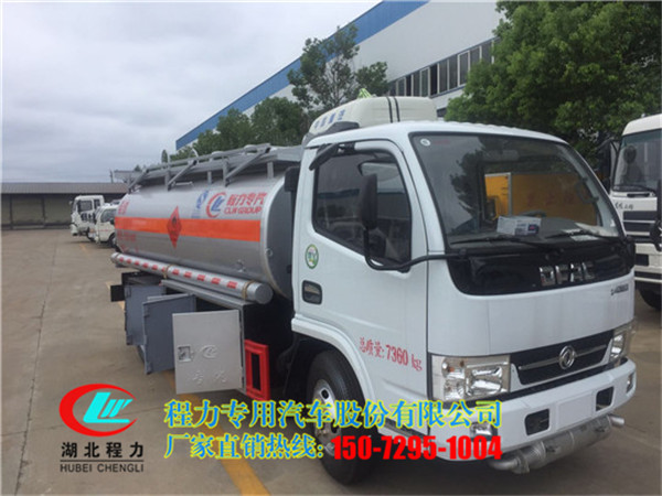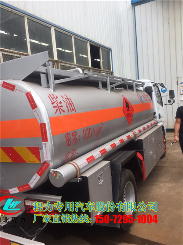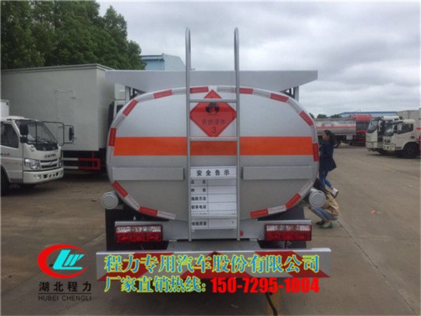 6、東風多利卡油罐車:(6-9立方)底盤采用朝柴120馬力發動機,中冷增壓,助力轉向,7.50-16鋼絲輪胎,前橋3T,后橋6T,最大截重10T,一般油罐裝油6-8T較為合適。油罐車罐體容積6 -9立方米,罐體采用4mm厚碳鋼板制作,帶齒輪油泵,可泵進泵出,可選配車載式電腦加油機,選裝15米加油管,帶加油槍,可按升、按金額計量加油。另可選裝流量表。加油機可裝在油罐車罐體前部倉內或裝于車體側下部。是一款可以流動加油的加油車。