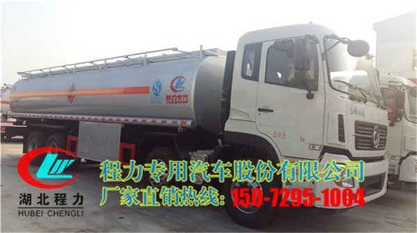 11、東風天龍后雙橋(國四)運油車:(20-25立方)東風天龍后雙橋油罐車采用東風天龍平頂帶駕駛室,康明斯國四發動機ISC8.3-245E40A,245匹馬力,法士特9檔變速箱,11.00R20鋼絲胎,罐體實際容積23.5立方,采用5-6mm厚國標碳鋼板制作。