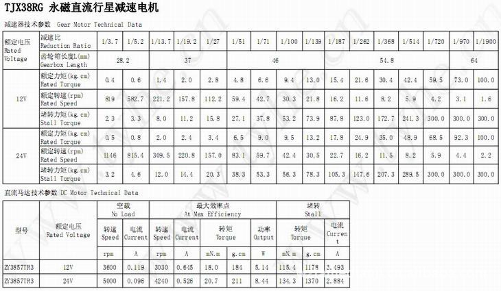 型號 TJX38RG 額定功率 15(W) 產品類型 直流行星減速電機