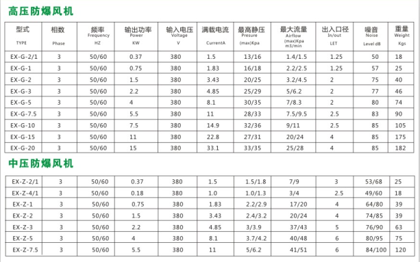 2.2kw防爆鼓風機防爆性高,運行可靠:電機防護等極為IP55,軸貫通位采用V型軸封環,接線盒采用圓形止口加密封圈,提高主要零部件加工精度,機座采用平行垂直散熱片結構,增大散熱面積等多種電氣、機械設計措施,在防塵防水方面I提高一個等極,電機運行更加可靠。