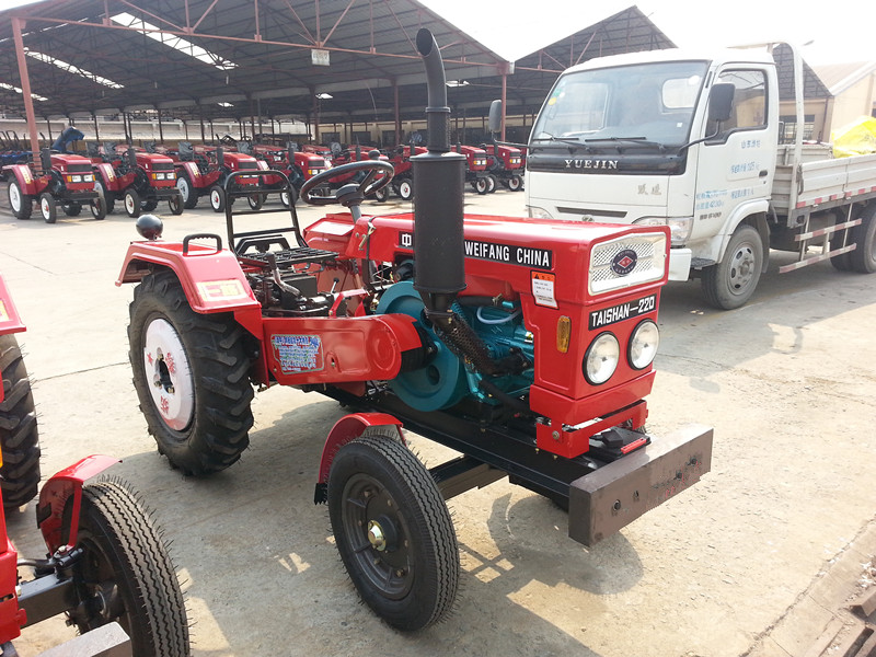 產品簡介:匹配常柴、萊動、江動等廠家的名優發動機,功率大、油耗低,動力經濟性好,形成18馬力、20馬力、22馬力和24馬力四個馬力段;發動機有蒸發式、強制循環和蒸循兩用等散熱方式,能滿足不同地區使用環境的需求;變速箱采用加強型6+1變速箱或8+2 變速箱,變速箱結構緊湊、設計強度大、檔位多;8+2變速箱可帶后動力輸出,采用嚙合套換檔,并裝有防脫機構,操作方便可靠;該機罩為專利流線造型,美觀大方,符合國際設計潮流;差速器選用加強型差速器,半軸花鍵選用漸開線結構,使用可靠性進一步提升;前橋采用推力軸承式結構,轉向機選用汽車轉向機,使駕駛操縱性能具有汽車般的靈活輕便;有0.96米、1.2米和1.3米輪距,能滿足不同地區的田間作業需求。