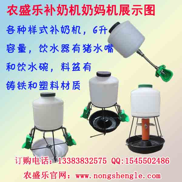 農盛樂小豬補奶器有多種規格,有鑄鐵底水嘴補奶機,鑄鐵底綠碗補奶機,塑料底水嘴補奶機、塑料底綠碗補奶機,以及簡易補奶機等規格都是50*30cm,只有簡易補奶機是60*20cm,操作都非常簡單,價格低廉,性價比高,用于仔豬提供奶和飼料,可一邊吃飼料一邊喝奶或喝水,有助于仔豬提前斷奶。農盛樂小豬補奶器電話:13383832575,QQ:15455024786