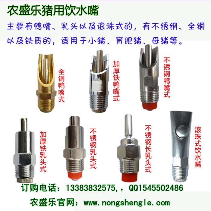 養豬場全銅豬水嘴多少錢一個,農盛樂全銅豬水嘴3.5元錢一個,全銅豬水嘴設備是豬場不可缺少的,現代化豬場需要大量的飲用水,豬必需能夠隨時飲用足夠量的清潔水。農盛樂全銅豬水嘴訂購電話:13383832575,QQ:1545502486
