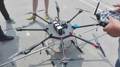 新型多旋翼飛機(jī),節(jié)省人力物力,保障了人身安全,不會發(fā)生中毒事件,噴藥的效率很高,一分鐘能噴1-3畝。