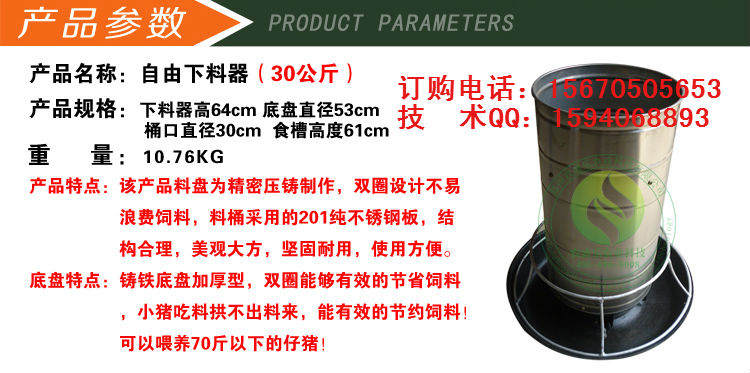 農盛樂自由下料器的底盤為鑄鐵底盤加厚型,雙圈能夠有效的節約飼料,小豬吃料拱不出料來,能有效的節省飼料,可以喂養70斤以下的仔豬!本料桶大約能裝30kg粉料,具體重量因飼料密度而定,只作為參考。不同型號的價格請咨詢客服。農盛樂自由下料器訂購電話:15670505653,技術QQ:1594068893,歡迎廣大用戶前來訂購!也可以關注我們的微信訂閱號,每天都有新驚喜!