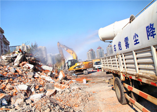 到成品料當中。霧炮車主要是針對煤場、火力發電廠、鋼鐵礦、焦化廠、料場、碼頭等因超量粉塵造成環境污染,且不需要像噴槍一樣大量噴水的場合,利用不同形狀和霧化角度的噴嘴將水霧化,與粉塵凝聚沉積下來,達到消除粉塵,凈化環境的目的。整個噴霧系統由水系統和控制系統組成,水系統由水源、管路、閥門、過濾器和除塵霧化噴嘴組成;控制系統由電磁閥、傳感器、控制器等構成。霧炮車具有操作方便、免維護、快捷、靈活的特點,并在實踐中取得了極佳的降塵效果。