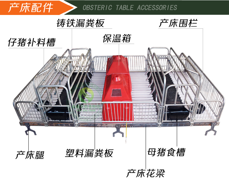 農盛樂母豬產床壁厚分為國標和非國標兩種,母豬產床的配件全部采用的是球墨鑄鐵人字腿10根,2.1米球墨鑄鐵橫梁8根,1.85米球墨鑄鐵花梁4根,50*70純白色加重型原生塑料漏糞板*15塊,60*70全實心球墨鑄鐵板*2塊,60*70全漏球墨鑄鐵板*2塊,60*70半實心球墨鑄鐵板*2塊,2.75壁厚熱鍍鋅圍欄一套,塑鋼保溫箱*2個,紅色玻璃鋼電熱板*2個,母豬鋼板食槽*2個,仔豬鑄鐵補料槽*2個,螺絲配件1套。本產床采用10個人字腿,有20個支點,是普通10個一字腿的2倍,是產床更加穩(wěn)定。全部框架采用球墨鑄鐵件,比角鐵橫梁花梁更加耐用,不易被壓彎。采用加重型原生塑料漏糞板,比復合料很耐用,物美價廉。母豬位采用3種不同的鑄鐵板,擺脫了普通產床的煩惱,母豬食槽位放置半實心鑄鐵板,更容易回收母豬浪費的飼料,中間采用實心鑄鐵板,避免了漏糞板縫隙夾乳頭對母豬造成的傷害。圍欄采用熱鍍鋅不易生銹,增加了本產床質量的穩(wěn)定性。應用玻璃鋼電熱板,材質比黑色塑料的更加實用,玻璃鋼與塑料電熱板差價20元每塊,多花20元多用3年沒問題。本款為加長型產床2.1*3.7米,比普通產床仔豬位空間長10公分,仔豬的活動區(qū)域更大,更有利于仔豬成長,加長不加價,讓你買到更加超值的產品。仔豬補料槽是鑄鐵的加重型,與塑料的相比更加耐磨耐用。圍欄為國標管,國標一般是2.5壁厚的 我們采用的圍欄壁厚用游標卡尺測量為2.75壁厚,熱鍍鋅工藝,圍欄焊接牢固,超長壽命,物有所值,值得擁有。