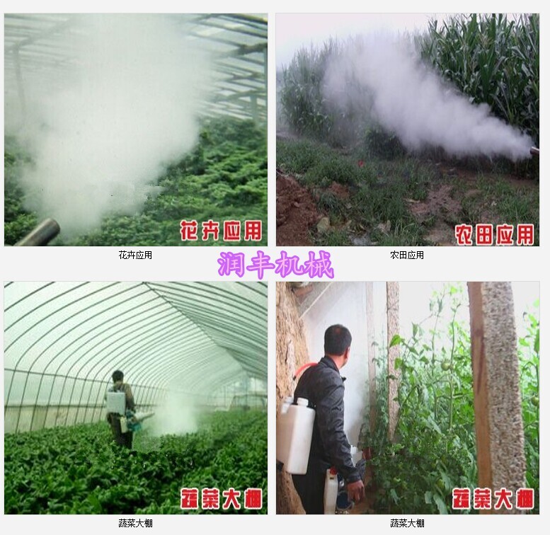 (4).藥害殘留少:彌霧機霧化顆粒細微,彌漫均勻,是目前發展綠色無公害蔬菜最理想的配套機械。