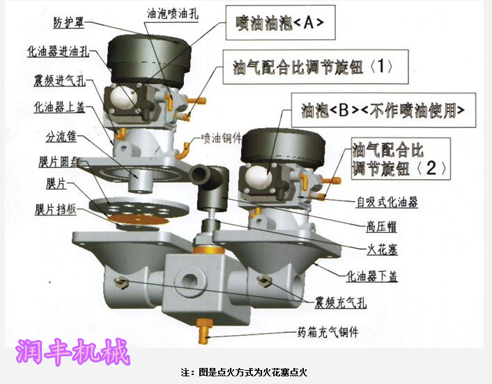 非常感謝您使用本公司生產的”潤豐牌”彌霧機,它是本公司自主研發的新產品,是目前世界上同類產品中最先進的產品類型,它使用了現代新型火箭技術、免維護脈沖噴氣式發動機,整機工作時無一轉動部件,無需潤滑系統,構造簡單,零部件之間不發生磨損,故障率低,使用壽命長,維修保養簡單。燃油少、工作效率高,是噴灑農藥、防疫消毒的高科技理想產品。
