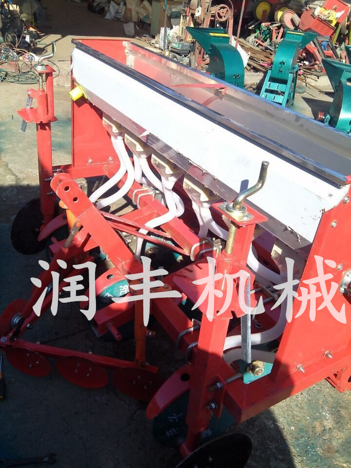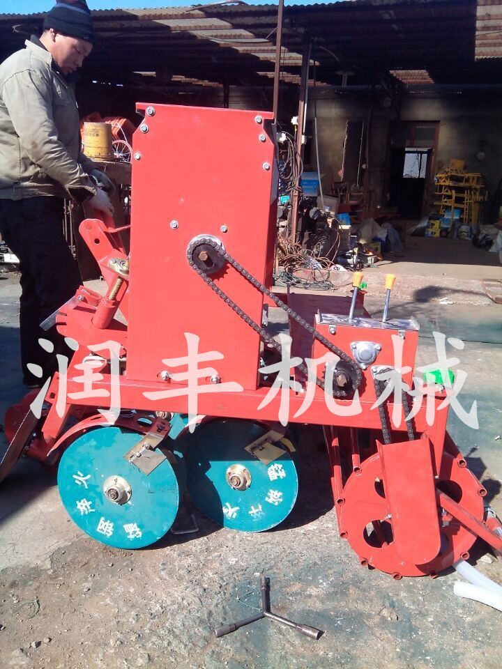 1:手把能高低,長短調節,適用于每一個人。 2:耘鋤板經過高溫滲碳處理,不需再加工。 3:先進的耘鋤架設計,斜支板設有調整孔,用來調節耘鋤板的抬頭,低頭, 耘地的深淺。耘鋤腿的高低調節是手把高低的輔助調節,不起耘地深淺的調節作用。 4:化肥斗支架有前后3個螺絲固定,方便拆卸,不使用時可以卸掉,以防碰壞。獨創的分離設計,三角帶傳動,不存在頂鏈條的問題。播種施肥可雙行,單行,前后使用,耘地施肥可同時進行。調節手柄,施肥量5~50千克可調。更換樓心,可以直播各種農作物。 5:施肥播種,耙地時,設有壓土輪,不用抬著,省力方便。 6:簡單合理的支稱,在使用單行播種,施肥,單鏵耘地時,支稱下放,整機能夠水平放置。方便添加種子,化肥。實現一人操作。 7:培土器有左,右分土鏟。安裝在耘鋤架左,右滑塊上,實現雙行培土。滑塊左,右互換,能夠把分土鏟前角靠在一起,實現平地開溝。分土鏟左,右互換,實現平地扶壟。斜支板的調整孔來調節分土鏟深淺及分土,培土多少。點播原種,直播毛仔,一次成功,每小時1~1.5畝,設計合理不存在缺陷。更換樓心,可以精播棉花,玉米,花生,大豆,向日葵。調整手柄播種量大,小隨意可調。