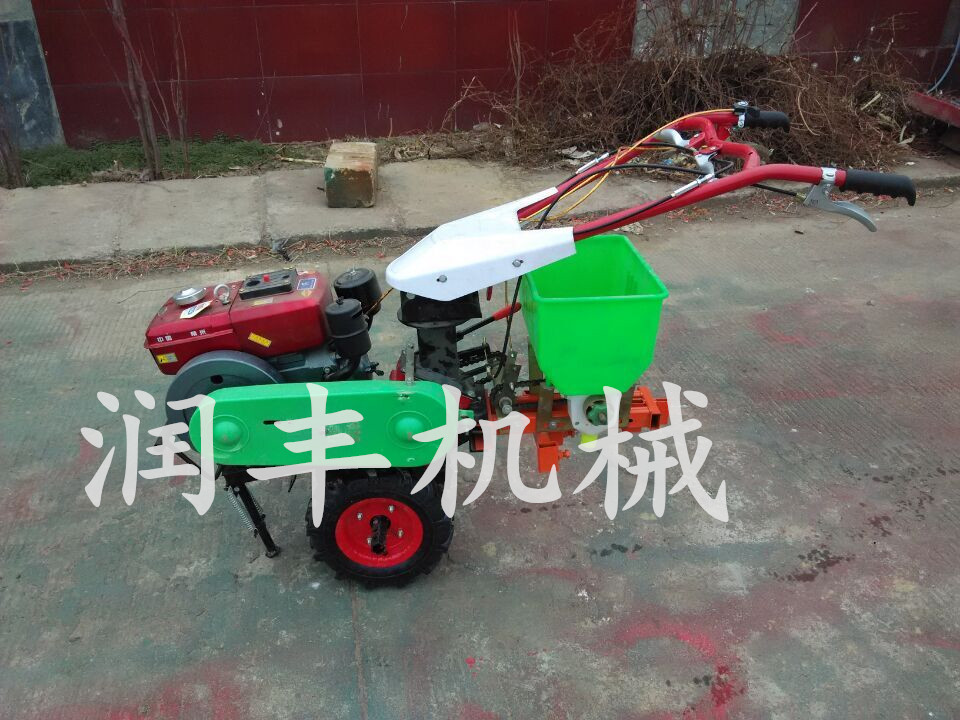 簡介:可以點(diǎn)播小麥、黃豆、紅豆、豌豆、玉米、蠶豆等顆粒狀種子。可以同時(shí)施肥、播種,下種量、下肥量、播種深度可以調(diào)節(jié),一天一個(gè)人,持一臺(tái)機(jī)器,可以施肥播種6-8畝,是人工刨坑播種的3-5倍,不要油、不要電、純?nèi)肆C(jī)型,操作簡單,幾分鐘就可以學(xué)會(huì),機(jī)器保修一年(人工損壞除外),本機(jī)放棄了傳統(tǒng)人工彎腰刨坑播種的辛苦模式,直接將化肥和種子一次性注入土壤,種子和化肥隔開5公分,化肥還比種子深一公分,保證絕對(duì)不燒種。,而且施肥播種能夠保持深淺一致,比傳統(tǒng)刨坑播種具有出苗整齊、輕松高效的特點(diǎn)。