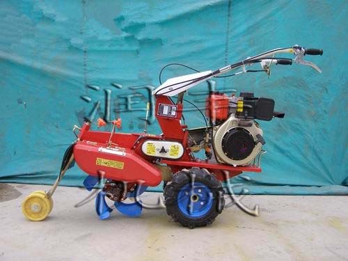 雙輪田園管理機,它包括機架、可調高低扶手,機架上設有(風冷或水冷)柴油機或汽油機、機架和扶手上設置有變速箱,變速箱的輸出軸上設置有能夠沿軸移動的驅動輪或鏈軌.傳動方式主要有:全齒輪傳動、皮帶傳動、鏈條傳動三種傳動方式.該機具有重量輕,油耗低、相對功率大,結構緊湊、機動性強、操縱輕便靈活的特點。可爬坡、越埂、階梯性強。廣泛適用于平原、山區、丘陵的旱地、水田、果園、菜地、煙地的深旋耕、淺旋耕、犁耕。配上相應機具可進行旱地旋耕、水田旋耕、抽水、開溝、噴淋、噴藥除草碎土等作業,還可牽引拖車進行短途運輸,是大中型農機無法媲美的多功能田園管理機,工作穩定可靠、使用壽命長、維修方便等特點。是進入農民家庭最理想的田園管理機。