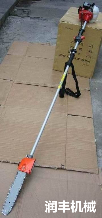 高枝油鋸用于森林采伐、造材、打枝等以及木場造材、鐵路枕木鋸截等作業。尤其適用于高處危險之地的修剪.該產品具有功率大、振動小、鋸切效率高、伐木成本低等諸多優點。已成為我國林區手持式采伐主導機械。該產品可任選其中一個工作頭,如割草機頭、割灌機、高枝油鋸、綠籬剪四種用具。此產品攜帶方便,使用簡單,具有此四種功能,可選購多功能高枝產品,四合一,三合一產品。       汽油機型號:1E34F      汽油機形式;單缸、風冷、二沖程      額定功率:0.7kw/6500rpm      最大扭矩:1.1N.M/5500rpm      排量:30cc      缸徑x行程:Φ36.5x28.5mm      修剪長度:500mm      凈重;6kg      毛重:8kg
