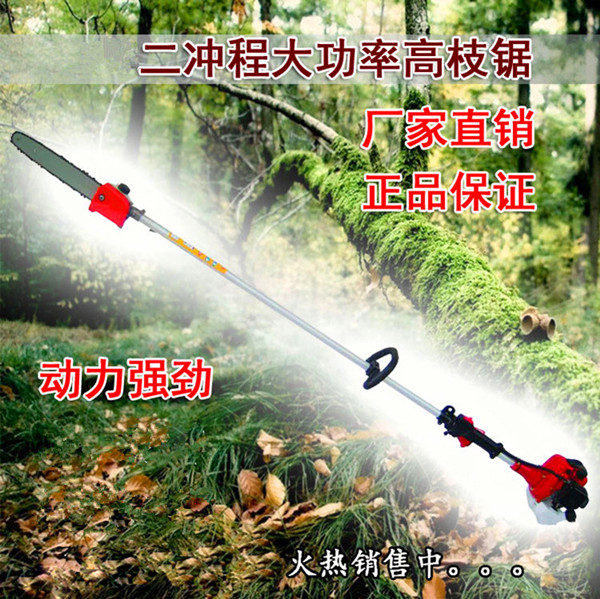 高枝油鋸用于森林采伐、造材、打枝等以及木場造材、鐵路枕木鋸截等作業。尤其適用于高處危險之地的修剪.該產品具有功率大、振動小、鋸切效率高、伐木成本低等諸多優點。已成為我國林區手持式采伐主導機械。該產品可任選其中一個工作頭,如割草機頭、割灌機、高枝油鋸、綠籬剪四種用具。此產品攜帶方便,使用簡單,具有此四種功能,可選購多功能高枝產品,四合一,三合一產品。 汽油機型號:1E34F 汽油機形式;單缸、風冷、二沖程 額定功率:0.7kw/6500rpm 最大扭矩:1.1N.M/5500rpm 排量:30cc 缸徑x行程:Φ36.5x28.5mm 修剪長度:500mm 凈重;6kg 毛重:8kg 。