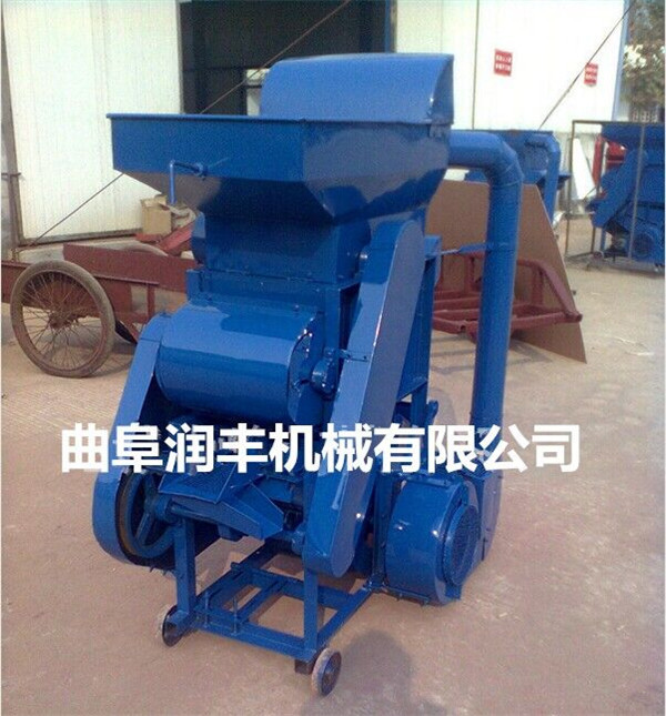 花生脫殼機有機架、風扇、轉子、單相電機、篩網(有大小兩種)、入料斗、震動篩、三角帶輪及其傳動三角帶等組成。